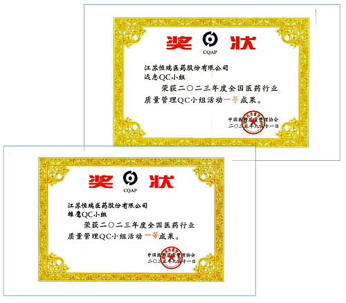 AG亚游集团医药荣获2023年度全国医药行业质量管理QC小组活动一等奖